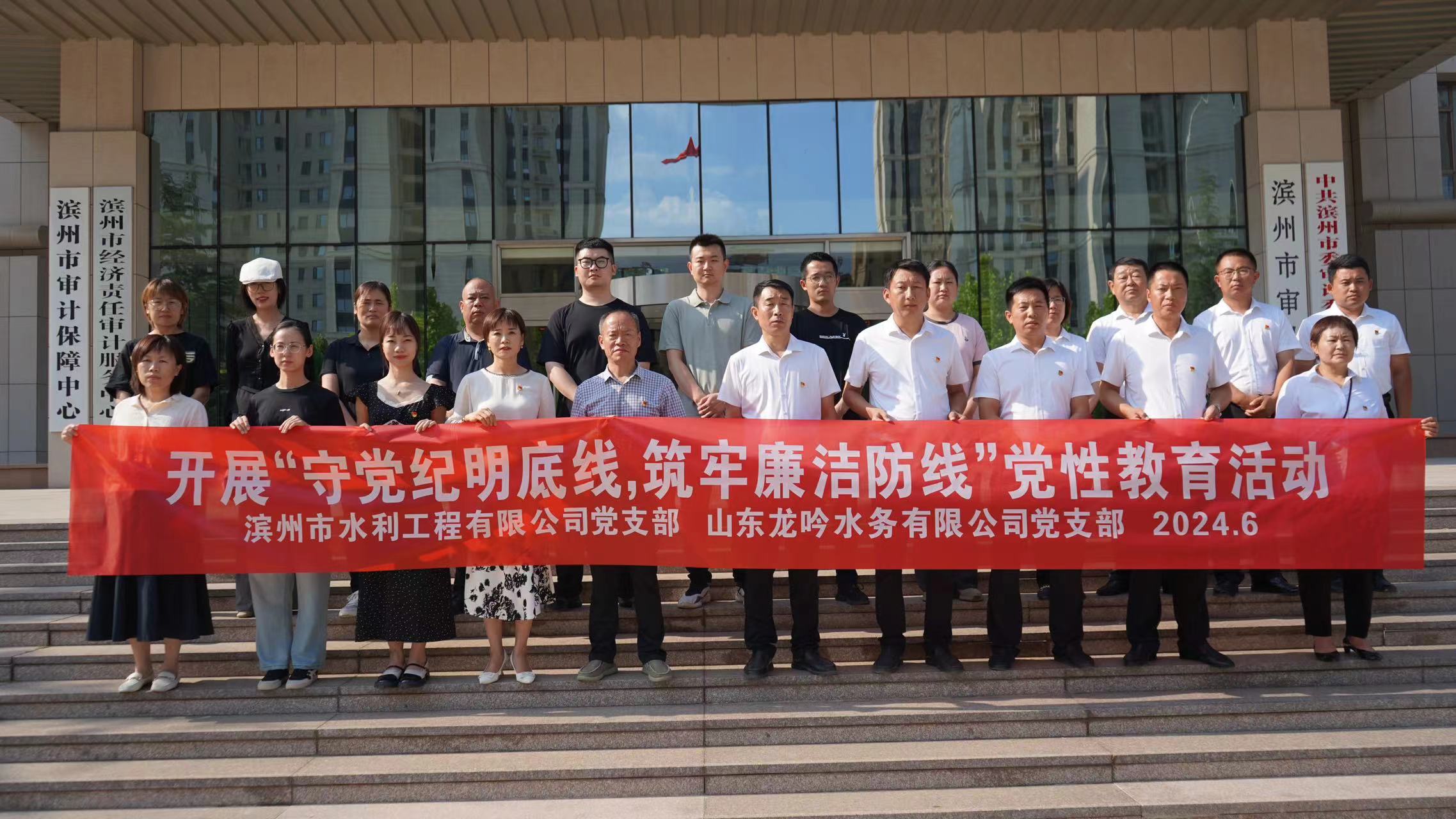 在中国共产党103岁生日即将到来之际,为进一步激励广大党员干部增强党性观念,筑牢思想根基,严守党的纪律规矩、坚定理想信念。6月25日,滨州市水利工程有限公司党支部携手山东龙吟水务有限公司党支部,共同开展了“守党纪明底线,筑牢廉洁防线”党性教育活动。山东龙吟水务有限公司党支部书记董事长王志强同志、滨州市水利工程有限公司党总支委员副总经理刘新文同志带队参加。
