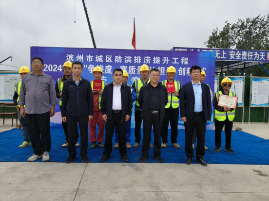 为贯彻落实山东省水利厅关于“加强质量支撑 共建质量强国”的“质量月”主题活动,滨州水务发展集团有限公司权属公司滨州市水利工程有限公司在防洪排涝项目举办了一场争进度 赛质量 比担当 创精品的劳动竞赛活动。本次活动旨在提升公司员工的工程质量意识和技能水平,发扬工匠精神,为打造优质工程及样板工程奠定坚实基础。